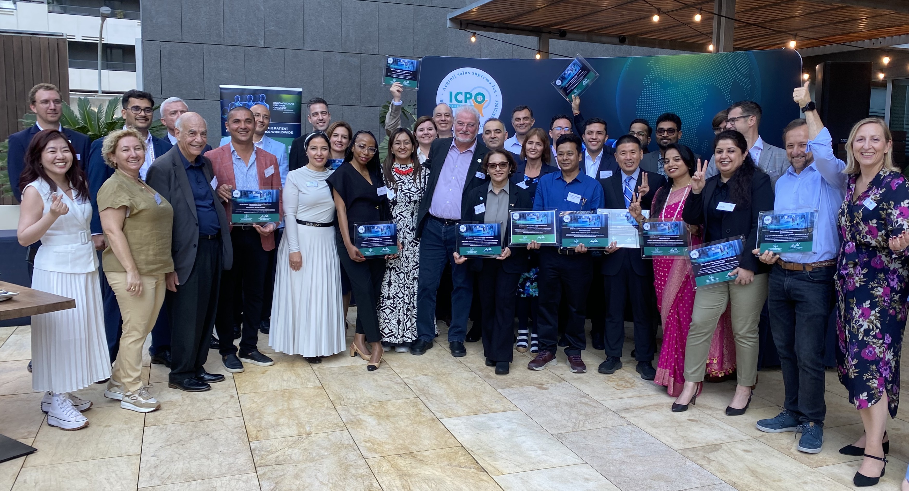 9. Oktober 2025 – Wiesbaden, Deutschland. Die International Centers for Precision Oncology (ICPO) Foundation gab die Kooperation mit 24 weiteren Theranostics Centern weltweit bekannt und zertifizierte diese offiziell als ICPO Theranostics Clinical Centers of Excellence. Mit diesen neuen Akkreditierungen umfasst das ICPO Center Network nun 45 Theranostics Centers, vorwiegend in Ländern mit niedrigem und mittlerem Einkommen (LMICs). Ziel der Stiftung ist es, diese Theranostics-Center durch die Verbesserung klinischer Standards zu stärken. Die ICPO Foundation stärkt ihr Netzwerk durch den Austausch von Expertenwissen, praxisbewährten Methoden und umfassenden Ausbildungsprogramme im Bereich Theranostics, um den Patientenzugang zu den Theranostics-Behandlungen zu erweitern und Behandlungsergebnisse nachhaltig zu verbessern. Um die neuen Mitglieder willkommen zu heißen, wurden die Zertifizierungen auf der 2. ICPO Center Certification Ceremony im Rahmen der ICPO Reception übergeben, die am 4. Oktober 2025, kurz vor der Jahreskonferenz der European Association of Nuclear Medicine (EANM) in Barcelona mit fast 90 Gästen veranstaltet wurde.